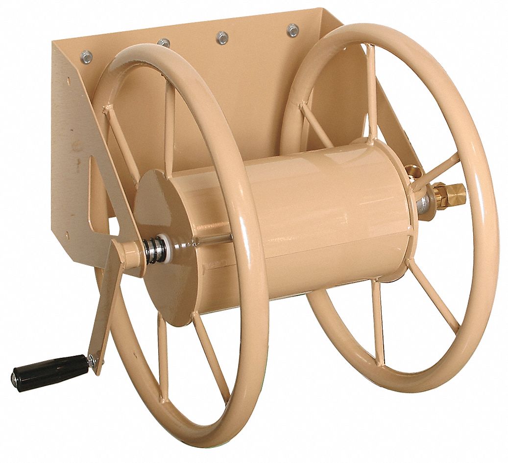 Find wall mount garden hose reel metal.